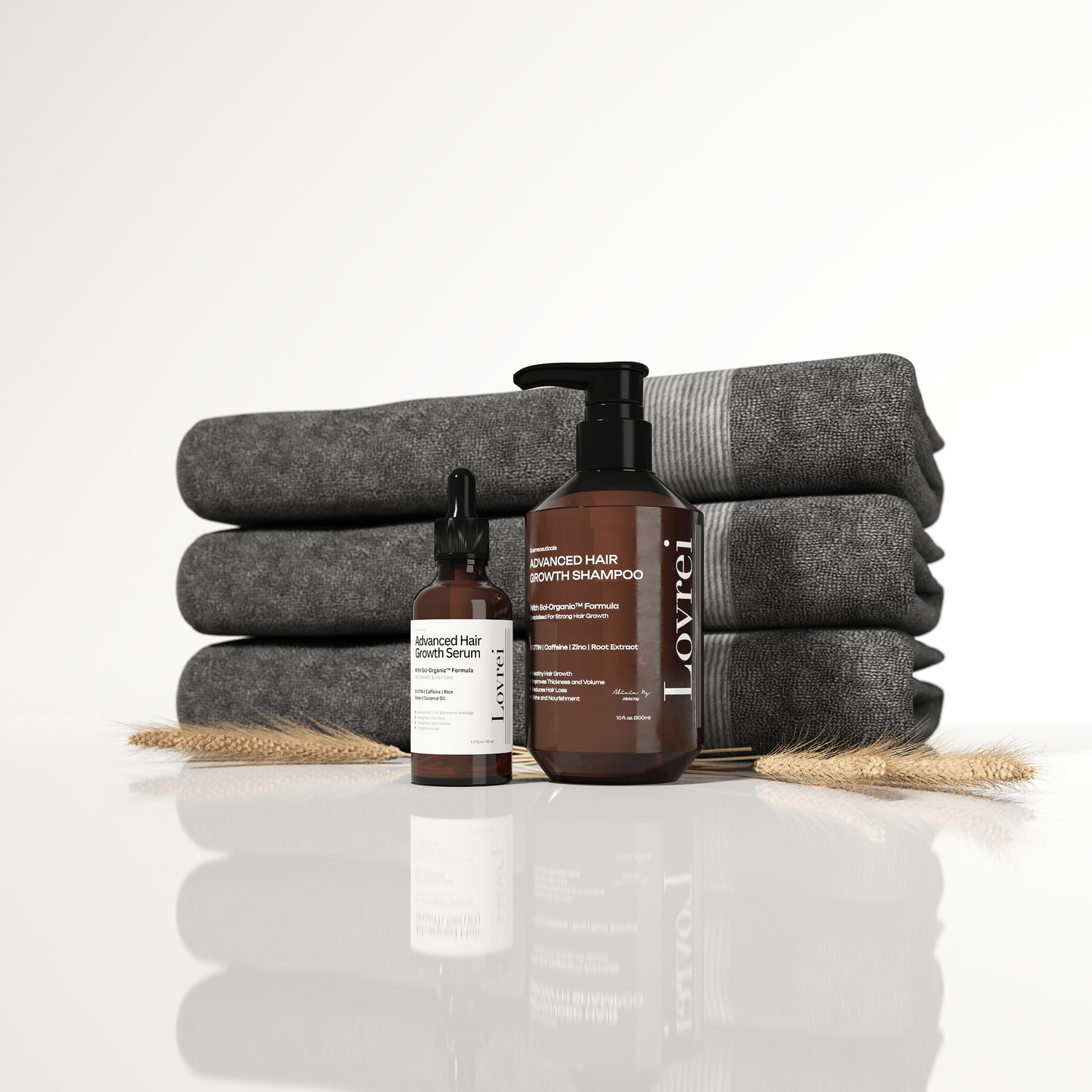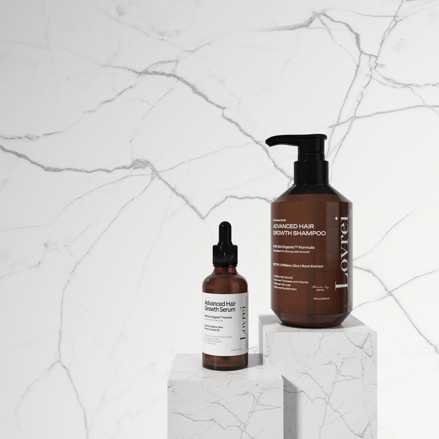 Our shampoo and serum contain natural ingredients that nourish hair follicles, promote healthy growth, and strengthen hair strands, resulting in fuller and thicker hair with regular use. Such as Biotin, Caffeine, Rosemary Extract, Coconut Oil and Rice Water.